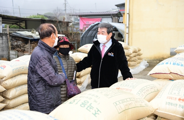 김충섭 김천시장은 “올해 코로나 19와 장마, 태풍 등으로 인해 벼농사에 상당한 어려움이 있었음에도 불구하고 당초 계획했던 매입물량을 100% 달성 할 수 있도록 최선을 다해준 농업인들의 노고에 진심으로 감사를 드린다.”고 전하며 내년도 공공비축미곡 매입 추진 시에는 헌 포장재 사용으로 인해 포대갈이를 하는 번거로움이 없도록 반드시 시에서 배부해 준 공공비축미곡 매입용 포장재를 사용해 줄 것을 함께 당부했다.