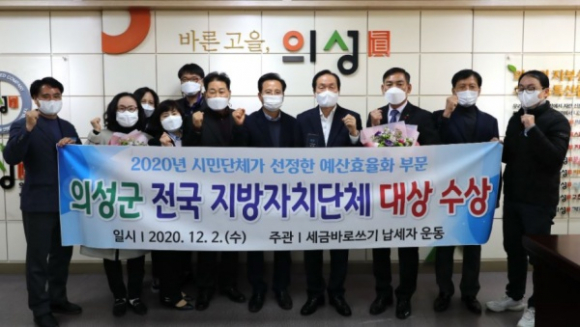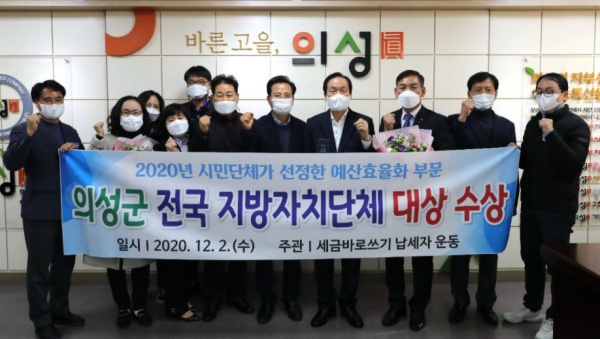 의성군(군수 김주수)이 12월 2일 시민단체가 선정한 2020년 예산효율화 사례평가에서 전국 최우수지방자치단체로 선정되어 대상을 수상했다.