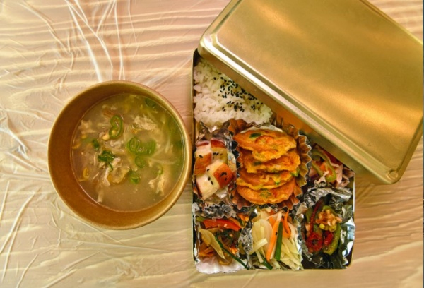 여기에 더해 네모난 양은 도시락에 옛날 소시지, 달걀 프라이, 각종 나물과 마른 반찬 등이 가득 담긴