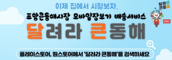 포항 남구의 대표 전통시장인 포항큰동해시장은 지난 11월 30일부터 포항 전통시장으로서는 최초로 모바일장보기 배송서비스 ‘달려라 큰동해’를 런칭하고 본격적으로 운영을 시작했다.