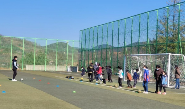 영양군(군수 오도창)은 스포츠강좌 수강이 곤란한 취약계층 어린이들을 대상으로 2020년 12월 5일 영양공설운동장에서 단기스포츠체험 축구교실을 개최하였다.