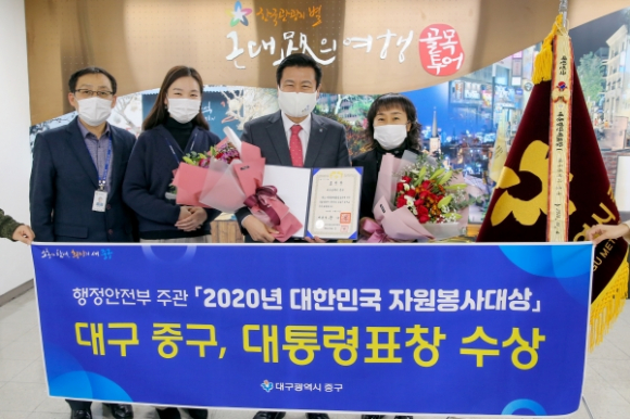 대구 중구청(구청장 류규하)은 행정안전부가 주관하는 「2020년 대한민국 자원봉사대상」에서 지방자치단체 부문 대통령표창을 수상했다.