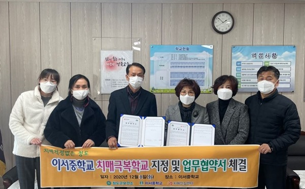 청도군(군수 이승율)은 12월 8일 치매선도학교로 지정된 이서중학교에 업무협약 체결 및 현판을 전달하였다.
