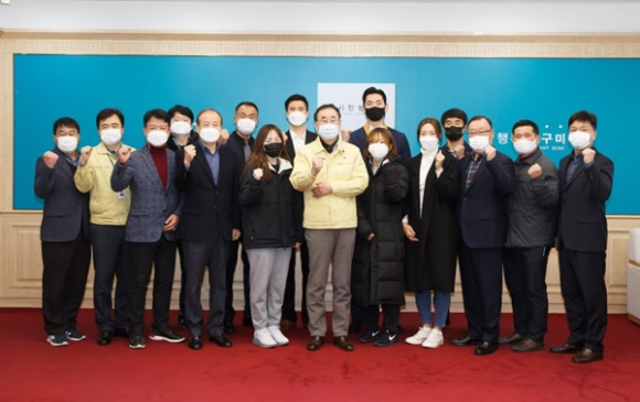 한편, 구미시(시장 장세용)는 12. 7 국제통상협력실에서 코로나19를 고려해 조병륜 구미시체육회장, 감독, 코치와 팀별 선수대표가 참석한 가운데 선수단 격려자리를 가졌다.
