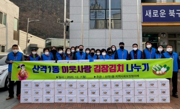 대구 북구 산격1동 행정복지센터(동장 이연하)는 12월 7일(월) 지역사회보장협의체 주관으로 ‘이웃사랑 김장 나누기’ 행사를 실시했다.