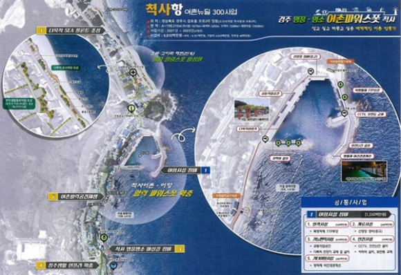 척사항 어촌뉴딜사업은 지난 9월 ‘경주 명품·명소 어촌파워스폿’이란 사업명으로 공모신청해 서면평가·발표평가·현장평가를 거쳐 최종 선정됐다.