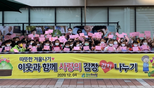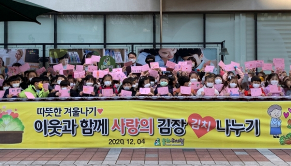 대구 동구 안심1동 율하유치원에서는 지난 4일 작년에 이어 올해에도 ‘따뜻한 겨울나기 김장김치 플러스 사랑의 편지’ 행사를 개최하여 지역의 어려운 이웃 50세대에 김장김치와 편지를 전달하였다.