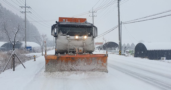 또한 군은 현재까지 덤프9대, 굴삭기 2대를 투입해 주요도로 10개 노선 180km에 염화칼슘 40톤, 모래 250㎥를 살포했으며, 읍면에서는 마을제설 트랙터 185대와 함께, 읍면사무소 직원, 지역자율방재단 등이 힘을 합쳐 신속한 제설작업을 벌였다. 특히 도래기재, 석개재, 주실령 등 4개소에 설치한 자동염수분사장치로 인해 도로 결빙을 크게 줄였다고 설명했다.