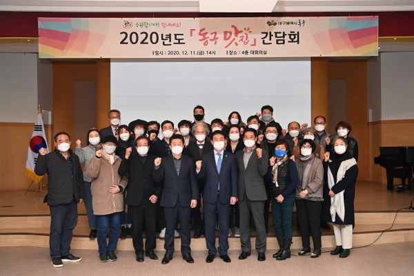 구 동구청(구청장 배기철)은 지난 11일 영업주 자긍심 고취, 사업 효과 거양 및 회원 간의 정보 공유와 역량 강화를 위해 동구맛집 대표자 30명을 대상으로 2020년 동구지정음식점 지정증 수여 및 동구맛집 간담회를 개최했다.