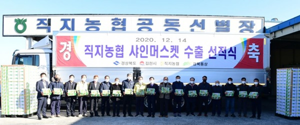 김천시(시장 김충섭)는 12월 14일 직지농협 농산물산지유통센터에서 김충섭 시장, 김춘안 농협중앙회 경북본부장, 서동완 김천시지부장, 하규호 직지농협장과 이사 및 임직원이 참석한 가운데 선적식을 가졌다.