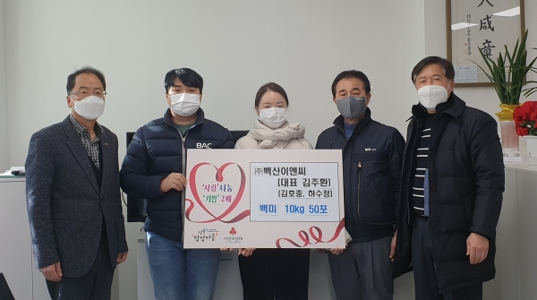 대구 수성구 상동에 위치한 ㈜백산이엔씨(대표 김주환)는 지난 14일 생활의 어려움을 겪고 있는 이웃에게 전달해달라며 쌀 10kg 50포(130만 원 상당)를 상동행정복지센터에 기탁했다.