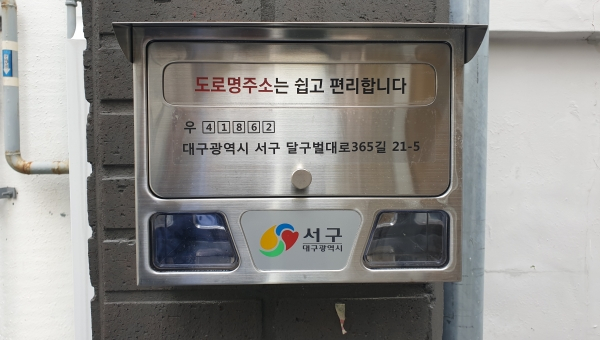 대구 서구(구청장 류한국)는 도로명주소의 활성화를 위해 희망일자리사업과 연계하여 관내 2층 이하의 단독주택에 도로명주소가 표기된 우편함을 제작ㆍ설치했다.