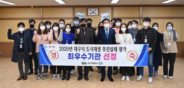대구 동구청(구청장 배기철)은 대구광역시에서 실시한 ‘2020년도 도시재생 추진실태 평가’에서 8개 구·군 가운데 최우수기관으로 선정됐다고 17일 밝혔다.