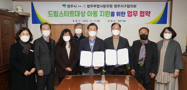 영주시(시장 장욱현)과 법무부법사랑위원 영주지구협의회(회장 민병철)는 12월 17일 오후 3시 직소민원실에서 영주시 드림스타트 대상아동을 위한 공부방 만들기 및 난방비 지원 등의 사업을 효율적으로 추진하기 위해 업무 협약식을 가졌다.