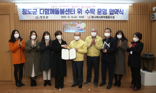 군은 본격적인 시설운영에 앞서 지난 16일 군청 군수실에서 청나래사회적협동조합(이사장 최성미)과 다함께돌봄센터 위‧수탁 운영에 대한 협약을 체결하고 12월 31일까지 시범운영에 들어갔다.