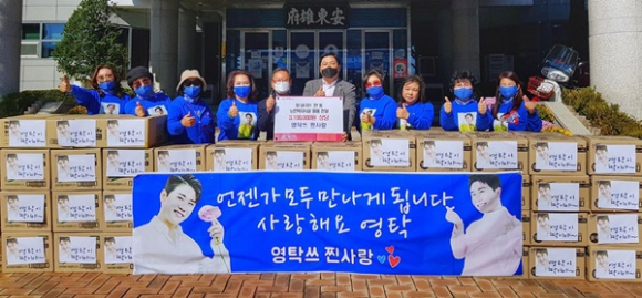 공식 팬클럽(영탁이 딱이야) 내의 소모임인‘영탁쓰 찐사랑’은 지난 10월에도 안동시청을 방문하여 마스크, 세탁세제 등 310여만 원의 물품을 노인복지시설에 기부하여 영탁의 고향에 팬심을 보였었다.