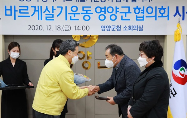 바르게살기운동영양군협의회(회장 김광연)는 12월 18일 14시 군청 소회의실에서 코로나19 예방수칙을 준수한 가운데 2020년 바르게살기운동 유공자 표창 시상식을 개최하였다.