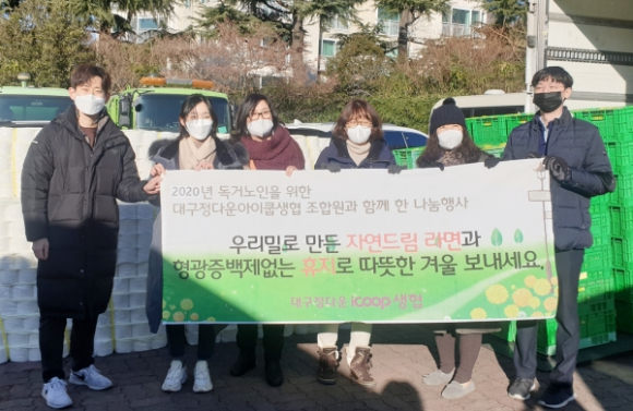 대구정다운아이쿱생협(대표 허성은)은 지난 17일 관내 취약계층을 위해 라면 500묶음과 휴지 500세트(430만 원 상당)를 수성구청에 전달했다.