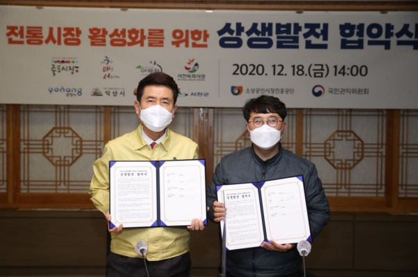 이번 협약은 국민권익위원회가 주관하고 소상공인시장진흥공단과 함께 각 지자체(경북 포항시, 전남 순천시, 전북 익산시, 충남 서천군), 해당 지역을 대표하는 전통시장 간 협력체계 구축으로 지역상권 위축, 코로나19 확산으로 어려움을 겪고 있는 전통시장 활성화와 소상공인 고충해소를 위해 관계기관·시장상인이 상생 발전할 수 있는 기회를 창출하고 지역경제 활성화를 도모하기 위해 마련됐다.