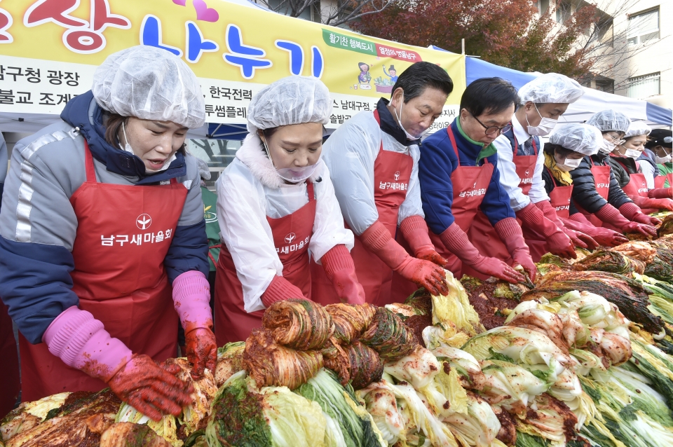 대구 남구청(구청장 조재구)은 남구청 광장에서 지난 28일부터 30일까지 남구새마을회(회장 김주연) 주관으로 사랑의 김장 나누기 및 전달식을 했다.