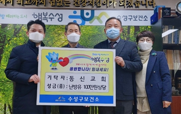 각 기관장들은 “추위와 싸우며 코로나19 방역에 힘써주시는 수성구보건소 공무원들에게 조금이나마 도움이 되고자 이렇게 물품을 기탁하게 됐다”고 말했다.