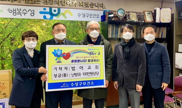 수성구의사회(회장 심재인), 수성구약사회(회장 유병선), 범어교회(담임목사 장영일), 동신교회(담임목사 김권수)는 수성구보건소를 각각 방문해 영하로 떨어진 추위를 견디며 근무하고 있는 선별진료소 근무자 및 보건소 공무원들을 위해 대형난로, 핫팩, 난방유 및 간식 등을 기탁했다.