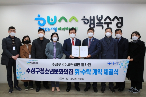 대구 수성구(수성구청장 김대원)는 지난 24일 사단법인 흥사단(이사장 박만규)을 ‘수성구청소년문화의집’의 민간위탁 운영단체로 선정하고 위·수탁 계약을 체결했다.