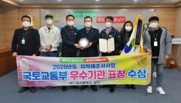 대구광역시 남구청(구청장 조재구)은 지난 22일 국토교통부가 주관하는 2020년 지적재조사사업 추진실적평가에서 전국 우수기관으로 선정돼 기관표창을 수상했다.