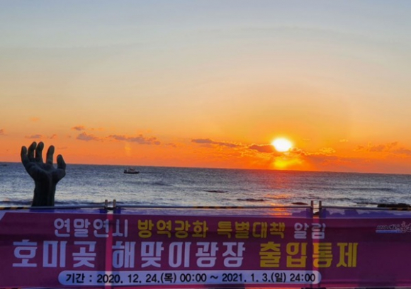 포항시는 전국적으로 코로나19 확진자가 지속적으로 발생함에 따라 주요 해맞이 명소를 폐쇄하고 ‘호미곶 한민족 해맞이 축전’을 취소하는 대신 2021년 1월 1일 ‘한반도 동쪽땅 끝에서 대한민국의 희망을 보다’를 지역 케이블TV HCN과 포항시 유튜브(포항시청)를 통해 생중계했다.