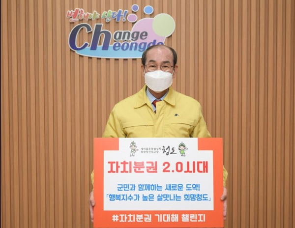 이승율 청도군수는 8일(금) 자치분권 2.0시대 개막을 응원하는 챌린지에 동참했다.