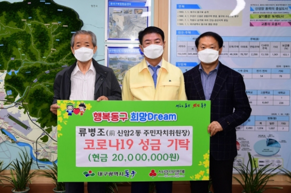 신암2동 류병조 前주민자치위원장은 지난 12일 동구청을 방문, 동절기를 맞아 난방에 어려움을 겪고 있는 독거노인에게 지원해 달라며 성금 200만 원을 기탁하였다.