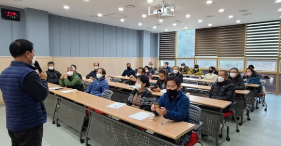 | ↑↑ 소백산 귀농드림타운에서 강의를 듣는 귀농인들 |