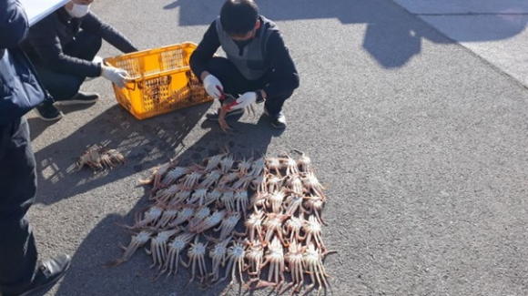 영덕군에 따르면, 해당 어선은 어린대게 72마리, 대게암컷 4마리 등 총 76마리를 불법 포획한 것으로 드러났다.