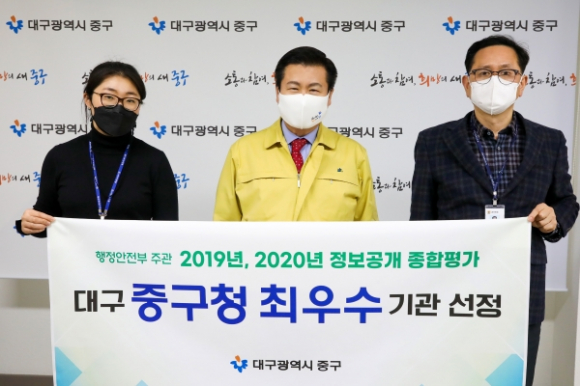 대구시 중구청이 행정안전부 주관 ‘2019년, 2020년도 정보공개 종합평가’에서 최우수 등급에 선정됐다.