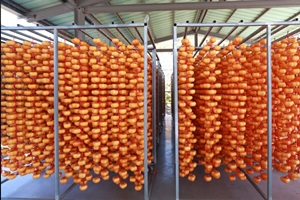 특히, 행운을 상징하는 네잎클로버 모양으로 감을 깎아 건조대에서 40~60일 말린 후 2차로 2~3일마다 아침에 널고 저녁에 거둬들이는 과정을 7~8번 반복해야 명품 곶감으로 탄생한다.