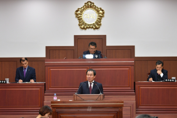 김충섭 김천시장은 지난 3일 제200회 김천시 의회 정례회에서 2019년도 예산안 제출에 앞선 시정연설에서 어려운 대내외 경제여건에서도 2019년도에 김천시 재정을 지역경제 활성화와 일자리 창출을 위하여 확장적 재정운영 기조를 유치해 나가겠다고 밝혔다.
