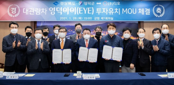 경상북도는 1월 28일 영덕군청에서 ㈜디오(The O)와 경상북도·영덕군 간 ‘영덕 대관람차(영덕아이) 설치사업’ 투자양해각서(MOU)를 체결했다고 밝혔다.