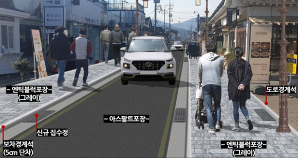기존 2차선에서 1차선으로 차로를 줄이고 차량 통행을 일방통행으로 제한하는 대신, 보행로 폭을 최대 6m까지 확대한다. 전 구간 차로 좌·우 양측에 인도가 새롭게 조성되면서 보행자의 안전성이 더욱 높아질 전망이다.