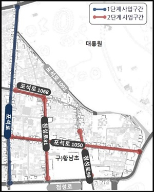 2월 2일 경주시에 따르면 황리단길과 대릉원 인근 동부사적지를 잇는 △포석로 1050번길 530m구간 △포석로 1968번길 140m구간 △첨성로 81번길 330m구간 △첨성로 99번길 210m구간 등 황리단길 인근 총 1210m 구간의 보행환경 개선사업이 추진된다.