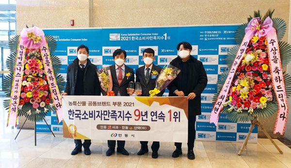 안동시는 2월 4일 안동사과와 안동산약(마)이 경제전문매거진 한경비즈니스가 주최하는『2021 한국소비자만족지수선정에서 9년 연속 1위』를 수상하는 영예를 안았다고 밝혔다.