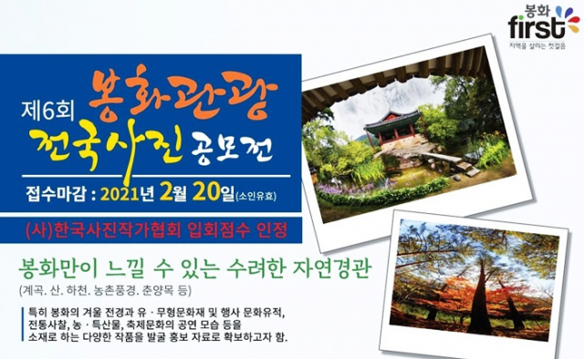6회째를 맞이하는 이번 공모전의 접수기한은 2월 20일까지로 대한민국 국민이면 누구나 참여할 수 있다. 공모전 출품소재는 봉화군의 자연경관을 포함한 관광명소, 축제 및 행사 등이 해당된다.