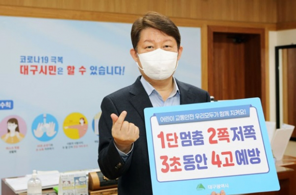 권영진 대구시장은 2월 16일(화) 어린이 교통안전에 관심을 갖고, 어린이 보호 문화 확산을 위해 ‘어린이 교통안전 릴레이 챌린지’에 동참했다.