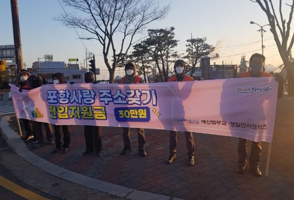 영일만서포터즈는 18일 출근길 시민을 대상으로 유동인구가 많을 것으로 예상되는 형산강 로터리에서 ‘포항시 주소갖기 캠페인’을 펼쳤다.