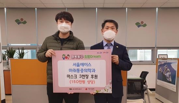 동구 신암동 소재 서울에이스마취통증의학과(원장 권일치)는 18일 동구청을 방문하여 어려운 이웃들을 위해 써달라며 마스크 3천 장(150만 원 상당)을 기탁하였다.