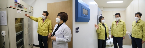 26일 코로나19 백신 예방접종이 시작되는 중구보건소와 코로나19 예방접종센터에 설치된 백신저장 저온냉동보관 시설 등을 점검하고 직원들에게 차질없는 예방접종이 시작 될 수 있게 노력해 달라고 당부하였다.