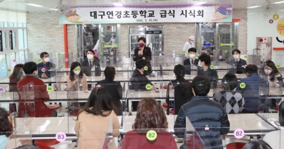 강은희 교육감은 2월 25일(목) 12시 30분, 신설교인 대구연경초를 방문해 방역준비상황을 점검하고 급식 시식회를 가졌다. 이 날 강교육감은 △학교 출입구 △복도 등 동선 분리 △급식실 환경 등 코로나19 대응 준비사항을 점검했다.
