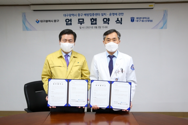 | ↑↑ 중구⇔계명대학교 대구동산병원, 코로나19 백신 접종을 위해 업무협약 체결 |