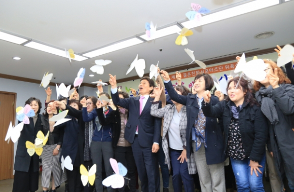 | ↑↑저출산과 혼인율을 극복하기 위하여 달서나비 날리기 퍼포먼스 (2019.4.1.) |