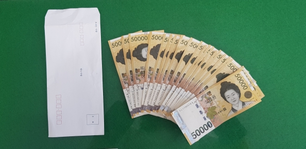 | ↑↑ 익명의 기부천사가 기탁한 기부금. |
