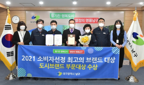 대구광역시 남구청(구청장 조재구)이 중앙일보 포브스코리아가 주최하고, 과학기술정보통신부와 산업통상자원부가 후원하는 「제10회 2021 소비자선정 최고의 브랜드 대상」에서 ‘도시브랜드 부문 대상’을 수상하였다.